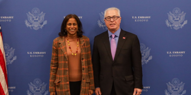 Ushtruesja e detyrës së ambasadores së Shteteve të Bashkuara në Kosovë, Anu Prattipati, priti sot veprimtarin dhe filantropin shqiptaro-amerikan, Harry Bajraktari, në një takim zyrtar në Ambasadën Amerikane në Prishtinë. Gjatë takimit, Prattipati vlerësoi dekadat e shërbimit publik të Bajraktarit në Shtetet e Bashkuara dhe angazhimin e tij të vazhdueshëm për forcimin e partneritetit strategjik midis Kosovës dhe SHBA-së. Bajraktari është i njohur për aktivitetin e tij të gjatë në komunitetin shqiptaro-amerikan dhe për përkrahjen e vazhdueshme të çështjeve shqiptare. Ai u mirëprit për kontributin e tij në afrimin e marrëdhënieve mes dy vendeve. sTakimi u zhvillua në një atmosferë miqësore dhe konstruktive, ku u ritheksua rëndësia e bashkëpunimit të qëndrueshëm strategjik midis Kosovës dhe Shteteve të Bashkuara, duke theksuar bashkimin e përpjekjeve në fusha të ndryshme të interesit të përbashkët.