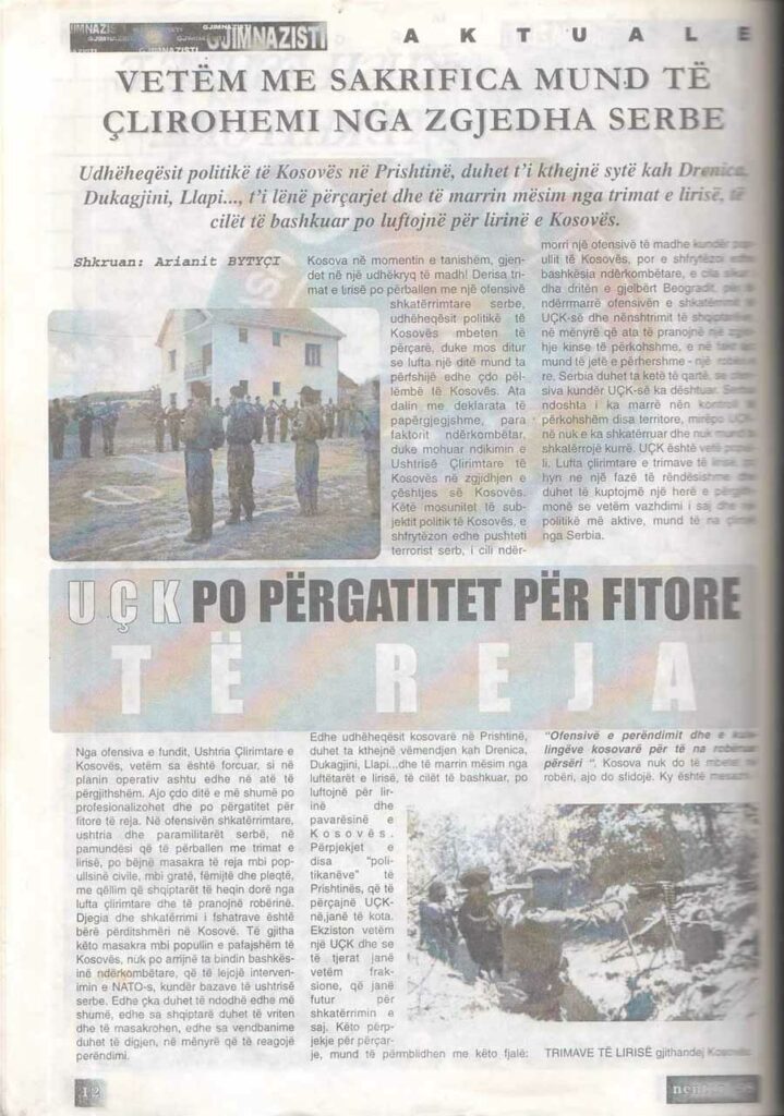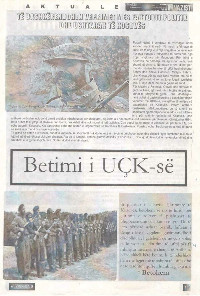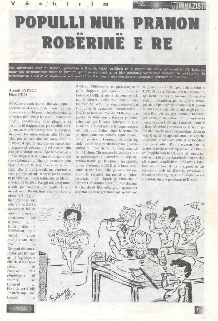 P.S. Bashkëngjitur me këtë shkrim autorial, në vazhdim po ua prezentoj 2 shkrimet e vitit 1998 të botuara në mbështetje të UÇK-së dhe duke kritikuar me argumente propozimin e Christopher Hill-it për një zgjidhje të çështjes së Kosovës në kuadër të Serbisë