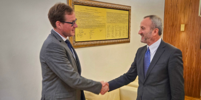 I ngarkuari me punë në Ambasadën e Gjermanisë në Kosovë, Christian Böttcher, është takuar sot me Kryetarin e Gjykatës Kushtetuese, Nexhmi Rexhepi, në një moment vendimtar për procesin e konstituimit të institucioneve të reja shtetërore. Në njoftimin zyrtar të ambasadës gjermane theksohet se Böttcher ka vlerësuar lartë punën e Gjykatës Kushtetuese dhe ka riprovu mbështetjen e plotë të Gjermanisë për pavarësinë dhe funksionimin e saj, duke theksuar se zbatimi i vendimeve të kësaj gjykate është detyrim kushtetues për të gjithë akterët politikë. “Të gjithë akterët politikë duhet t’i zbatojnë vendimet e Gjykatës — ky është një detyrim kushtetues për deputetët. Mospërmbushja e këtij detyrimi jo vetëm që e zgjat, por edhe e thellon krizën politike, duke e dëmtuar vendin. Është koha që vendi të vihet në radhë të parë, jo interesat partiake”, thuhet në njoftim. Takimi ndodhi në një kohë kur vendi ndodhet në krizë të thellë institucionale, tetë muaj pas zgjedhjeve parlamentare të mbajtura në shkurt, ndërsa Kosova ende nuk ka Kuvend të konstituar dhe as qeveri të re. Gjykata Kushtetuese më 30 shtator ka njoftuar se seanca konstituive e Kuvendit, e nisur më 15 prill, nuk ka përfunduar për shkak të moszgjedhjes së nënkryetarit nga komuniteti serb. Sipas vendimit, deputetët janë të detyruar ta përfundojnë këtë proces brenda 12 ditësh nga dita e publikimit të aktgjykimit të plotë. Ky aktgjykim hyn në fuqi ditën e publikimit dhe njoftimit të palëve.