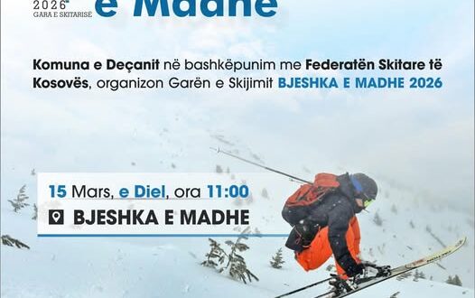 Komuna e Deçanit, në bashkëpunim me Federatën Skitare të Kosovës, organizon garën e skijimit “Bjeshka e Madhe 2026”, e cila do të mbahet më 15 mars, në ora 11:00, në Bjeshkën e Madhe.