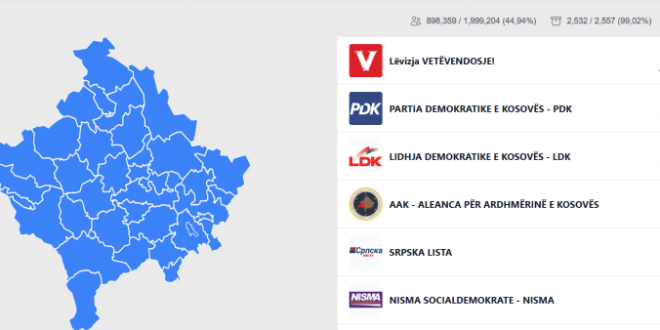 Komisioni Qendror i Zgjedhjeve, ka shpallur rezultatet preliminare të zgjedhjeve të 28 dhjetorit, sipas të cilave Lëvizja Vetëvendosje ka dalë fituese me 49.80 për qind të votave. Rezultatet janë publikuar pas numërimit të 96.13 për qind të votave, ndërsa kryetari i KQZ-së, Kreshnik Radoniqi, ka bërë të ditur se pjesa e mbetur e votave do të procedohet dhe publikohet në platformën online të KQZ-së. Sipas të dhënave preliminare, Partia Demokratike e Kosovës është renditur e dyta me 21.18 për qind të votave, e pasuar nga Lidhja Demokratike e Kosovës me 13.77 për qind. Aleanca për Ardhmërinë e Kosovës ka marrë 5.74 për qind, ndërsa Lista Serbe 3.86 për qind të votave. KQZ ka njoftuar se shpallja e rezultateve përfundimtare do të bëhet pas përfundimit të numërimit të votave nga diaspora, votave të personave me nevoja të veçanta dhe votave me kusht. Ndërkohë, Radoniqi ka sqaruar se numërimi i votave për kandidatët për deputetë dhe konfirmimi i votave për subjektet politike do të nisë të nesërmen nga ora 12:00, pasi materiali zgjedhor gjatë natës do të shpërndahet në qendrat komunale të numërimit. Procesi i numërimit pritet të vazhdojë edhe në ditët në vijim.