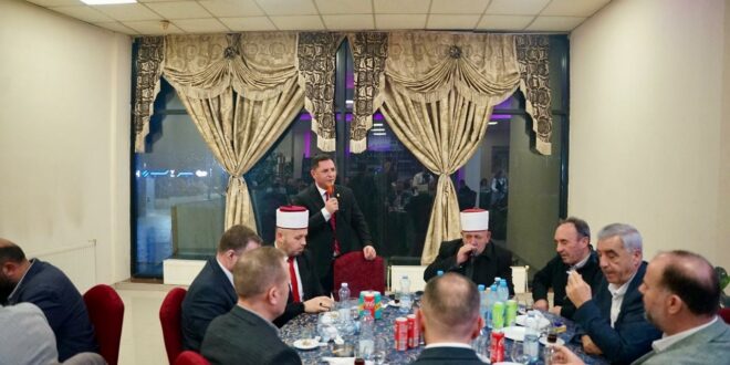Ky iftar tradicional u organizua në frymën e respektit dhe mirënjohjes ndaj familjeve të dëshmorëve dhe rolit të Bashkësisë Islame në komunitet.