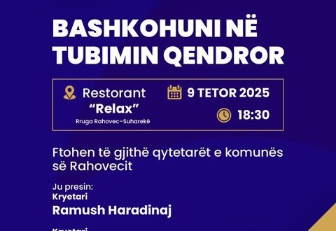 Kryetari i komunës së Rahovecit, z. Smajl Latifi i cili synon edhe një mandate të ri në zgjedhjet lokale të 12 tetorit ka njoftuar përmes rrjeteve sociale se të enjtën më 9 nëntor në ora 18.30 në restaurant Relax (magjistralja Rahovecë – Suharekë) mbahet tubimi final ku do të bëhet prezantimi përmbledhës i programit qeverisës të tij. Në këtë tubim do të merr pjesë edhe kryetari i AAK-së, z. Ramush Haradinaj.
