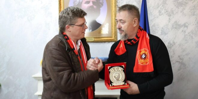 Kryetari i Komunës së Skenderajt Sami Lushtaku priti me bashkëpuntorë ka pritur në takim zëvendëspresidentin e klubit futbollistik FC Drenica, z. Faton Seferi, së bashku me menaxhmentin e klubit, trajnerin e ekipit, stafin mbështetës dhe futbollistët.
