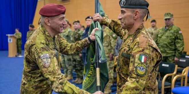 Komandanti i KFOR-it, gjeneralmajor Enrico Barduani, ka kryesuar ceremoninë e ndërrimit të komandës së Batalionit të Zbulimit, Vëzhgimit dhe Zbulimit, e cila u mbajt në kampin “Film City” në Prishtinë. Nënkoloneli Giovanni De Santis, komandanti në largim, dorëzoi flamurin e NATO-s komandantit të ardhshëm, nënkolonelit Salvatore Salvaggio, duke theksuar përkushtimin dhe profesionalizmin e lartë të shfaqur nga personeli i njësisë. Ceremonia e ndërrimit të komandës u zhvillua në një atmosferë solemne, ku gjeneralmajor Barduani shprehu mirënjohjen dhe vlerësimin për nënkolonelin De Santis për udhëheqjen e tij të suksesshme dhe gatishmërinë e lartë të njësisë. Në njoftimin e KFOR-it theksohet se misioni i forcave të KFOR-it vazhdon të zbatohet në përputhje me Rezolutën 1244 të Këshillit të Sigurimit të OKB-së, e cila parashikon kontribuimin në sigurimin e një mjedisi të sigurt dhe të sigurt për të gjithë qytetarët e Kosovës, pa dallim, dhe për garantimin e lirisë së lëvizjes.