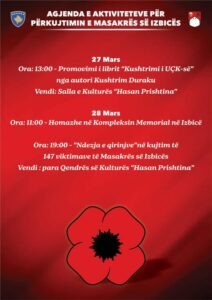 Komuna e Skenderajt me 27 dhe 28 mars 2026 organizon aktivitete përkujtimore në shënim të përvjetorit të 27-të të masakrës së Izbicës.