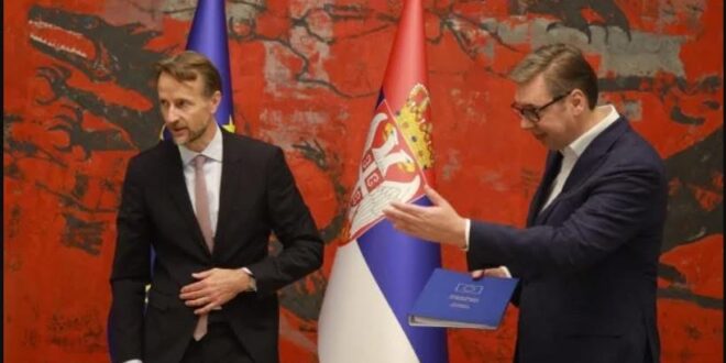 Në një takim që ngjalli tension diplomatik në Beograd, presidenti i Serbisë, Aleksandar Vuçiq, është përplasur me shefin e Zyrës së Bashkimit Evropian në Serbi, Andreas von Beckerath. Ky i fundit ia dorëzoi Vuçiqit Raportin e Progresit, por vëmendjen e mediave e mori momenti kur zyrtari evropian kërkoi llogaridhënie për autorët e sulmit të armatosur në Banjskë. Andreas theksoi se Serbia duhet të zbatojë plotësisht marrëveshjet e vitit 2023 dhe të sigurojë që përgjegjësit për ngjarjet në veri të Kosovës të vihen para drejtësisë. Ai kujtoi se normalizimi i marrëdhënieve me Kosovën është çelësi për stabilitetin rajonal dhe përparimin evropian të Serbisë. Por Vuçiq reagoi me tone të ashpra. Ai kundërpërgjigj se pret që BE-ja të kërkojë drejtësi edhe për “ngjarjet nga viti 2008 deri në fund të vitit 2025”, ku sipas tij “serbët janë vrarë, plagosur e arrestuar pa të drejtë”. Ky reagim, që synon ta zhvendosë përgjegjësinë nga Serbia te palët e tjera, u pa nga analistët si tentativë për të shmangur presionin ndërkombëtar. Përplasja mes Vuçiqit dhe përfaqësuesit të BE-së shënon një tjetër pikë tensioni në marrëdhëniet e Brukselit me Beogradin, në një kohë kur Bashkimi Evropian po kërkon qartësi, transparencë dhe ndëshkim të autorëve të sulmit të Banjskës – ngjarje që tronditi Kosovën dhe rajonin. Ky zhvillim tregon se rruga e Serbisë drejt integrimit evropian mbetet e vështirë dhe e ndërlikuar, për sa kohë që drejtësia për Banjskën nuk merr epilogun e kërkuar nga BE-ja.